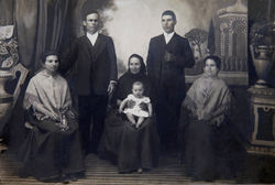 ![]() Fotografía familiar, años 20. Antes de la restauración digital. | ![]() Después de la restauración digital. Color sepia. |